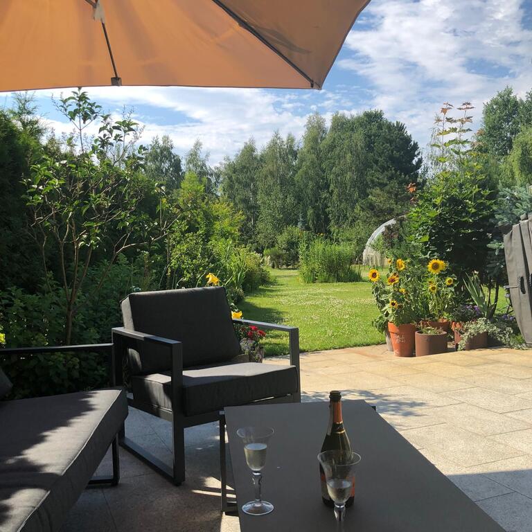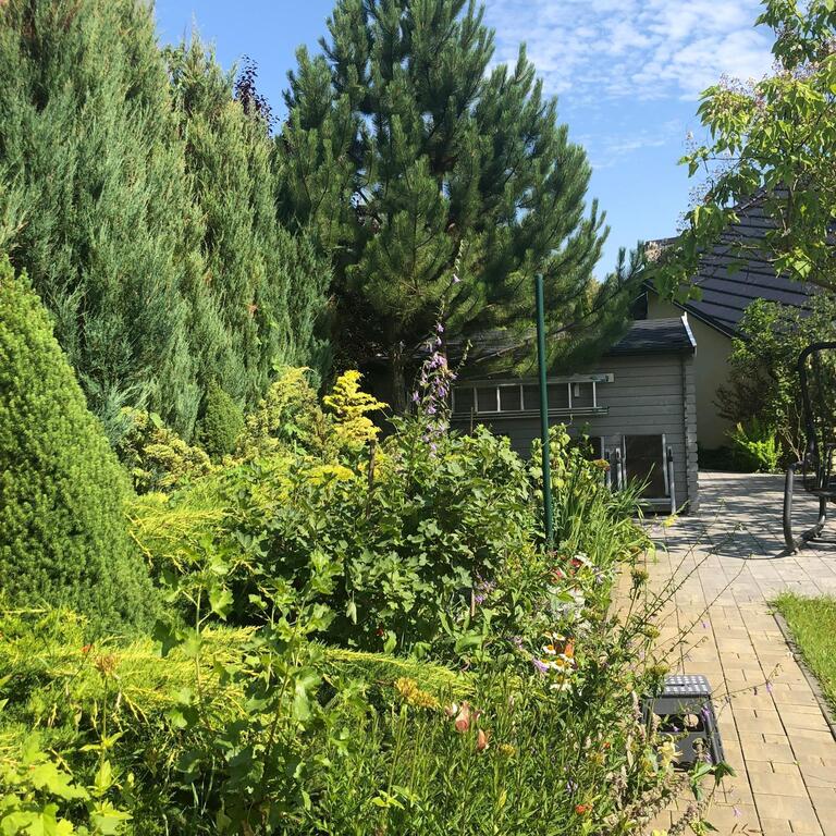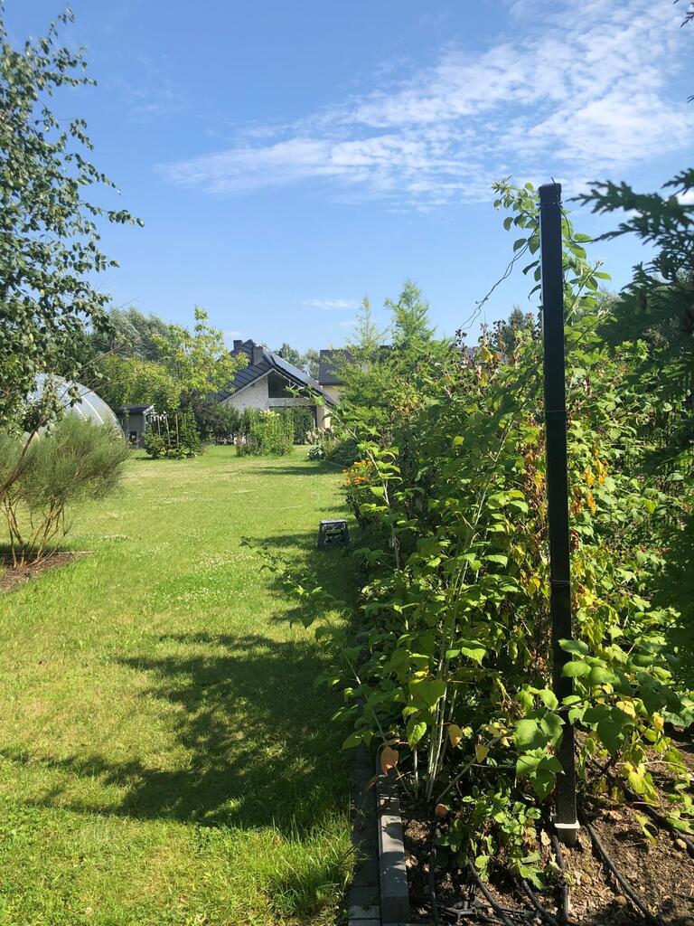 Przepiękny ogród jak z bajki z owocowymi krzewami, kwiatami, krzewami ozdobnymi i drzewami. Na działce znajduje się domek ogrodowy. Działka dobiega do granic rzeki, można spacerować w przepięknym otoczeniu zieleni słuchając szumu przepływającej wody.