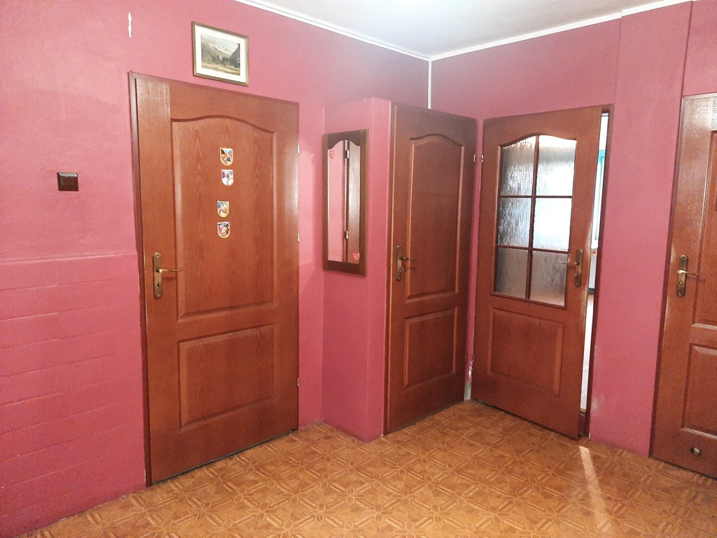 - Parter: 2 pokoje, kuchnia, łazienka, duży hol.