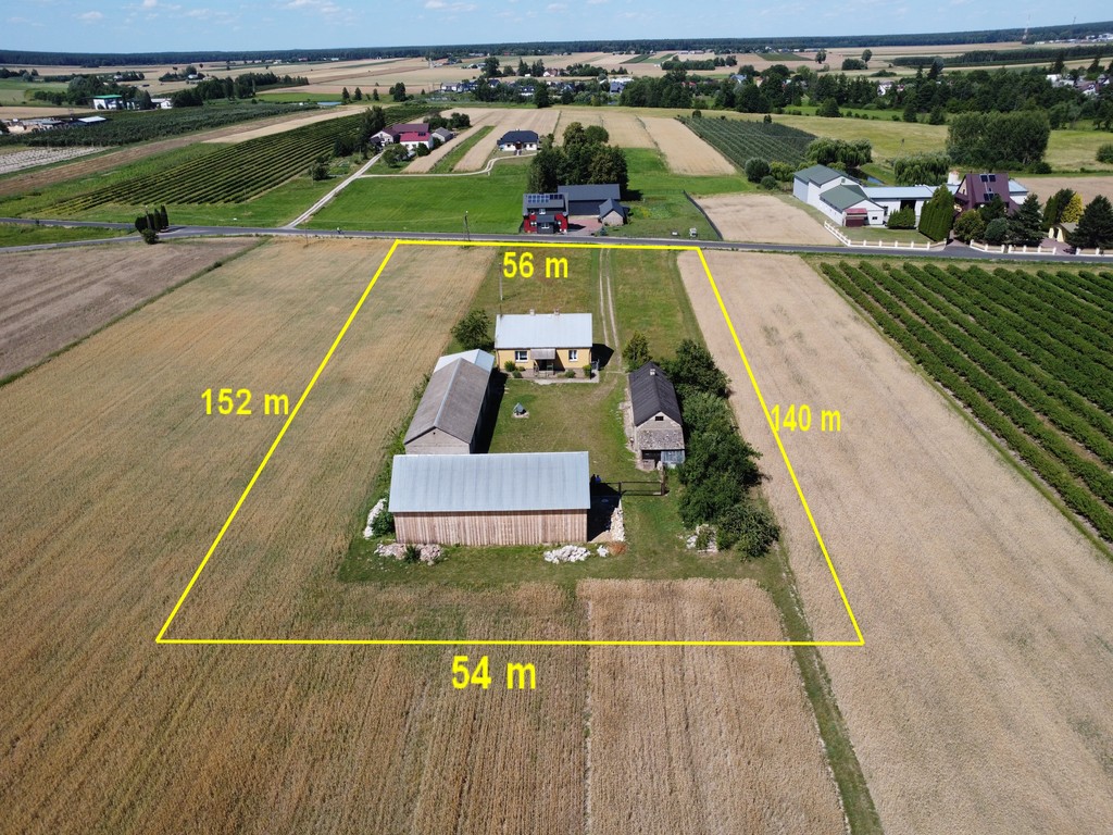 Na działce znajduje się dom oraz zabudowania gospodarcze