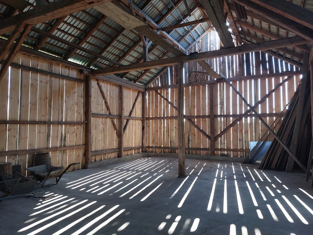 - dawna obora przerobiona na garaż i pomieszczenia gospodarcze