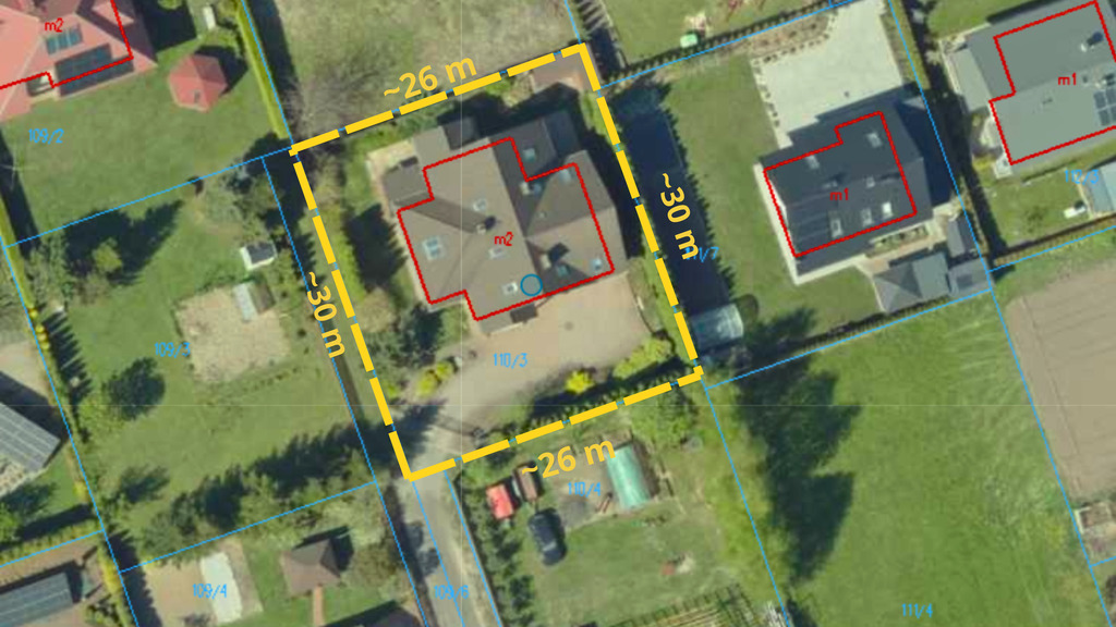- Powierzchnia działki: 0,0809 ha (809 m²)