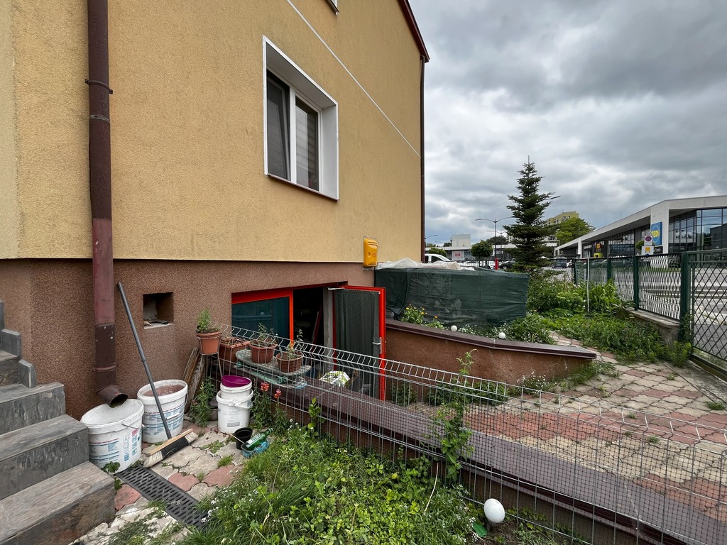 Dodatkowo pełne podpiwniczenie z kotłownią i pomieszczeniami gospodarczymi. W największym pomieszczeniu niski garaż z kanałem (obecnie zasypany).