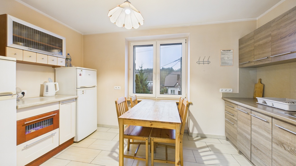 Na powierzchnie całkowitą ok 286 m2 składa się: 9 pokoi dla gości, pokój pełniący funkcje  biura, 2 kuchnie, 4 łazienki, dwa garaże i kotłownia.