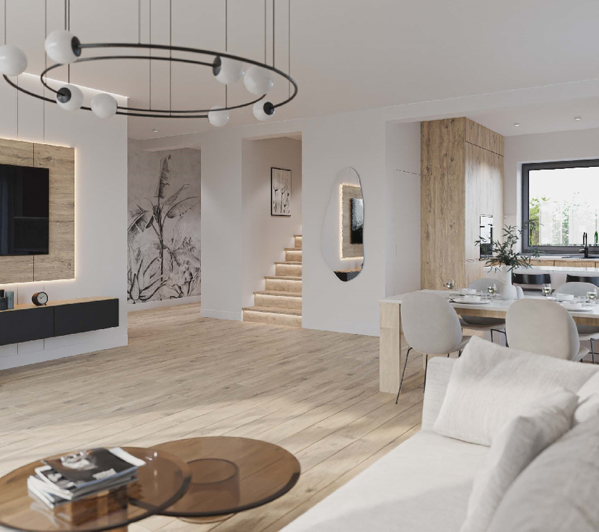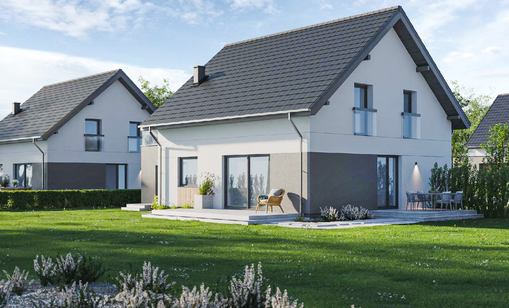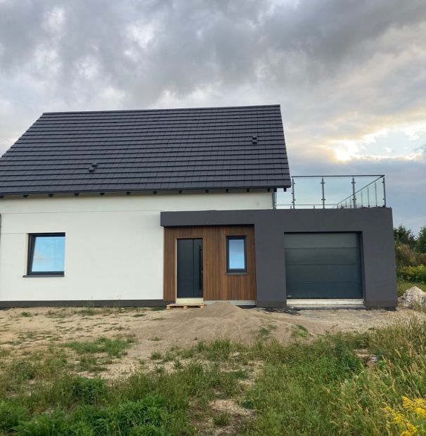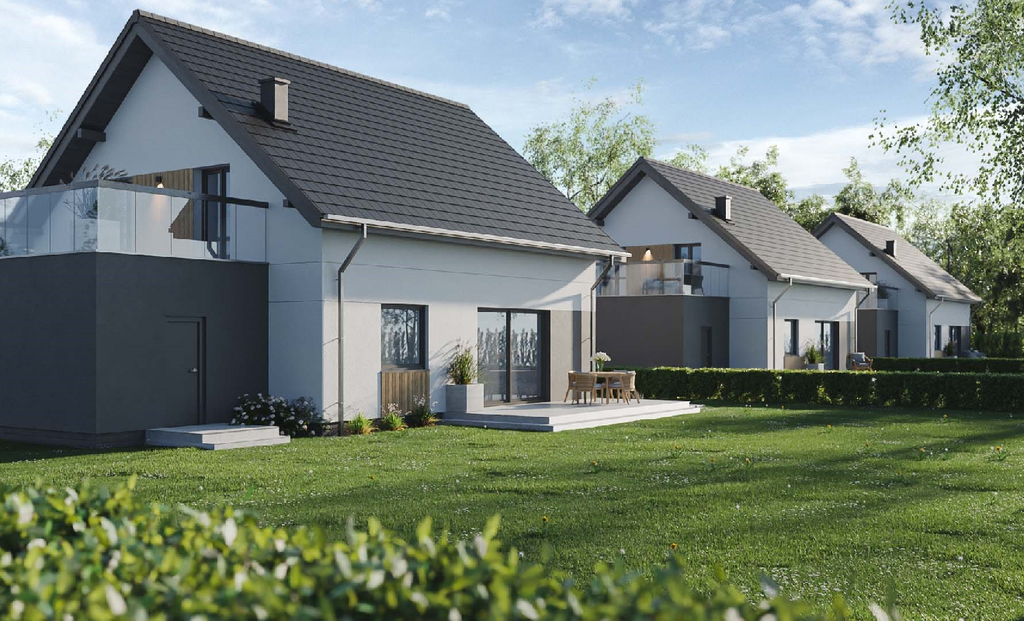 Dom jednorodzinny, wolnostojący o powierzchni 157 m2 położony na włąsnej działce 900 m2 w nowopowstającej inwestycji deweloperskiej.