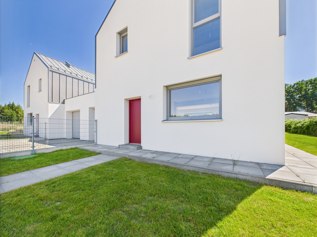 Dom wyposażony jest w duże 3-szybowe okna PCV i przeszklenia. Zamontowane zostały również alektrycznie sterowane rolety.