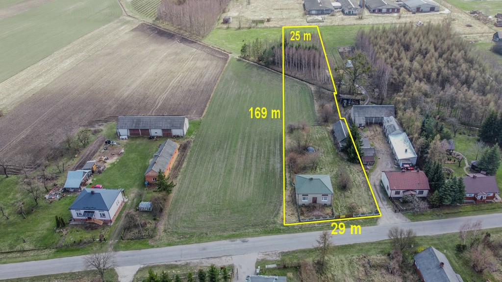 działka o powierzchni 4414 m2.Wymiary działki ok. 29m x 169m x 25 m