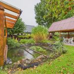 - ogród z licznymi nasadzeniami i miejscem do wypoczynku.