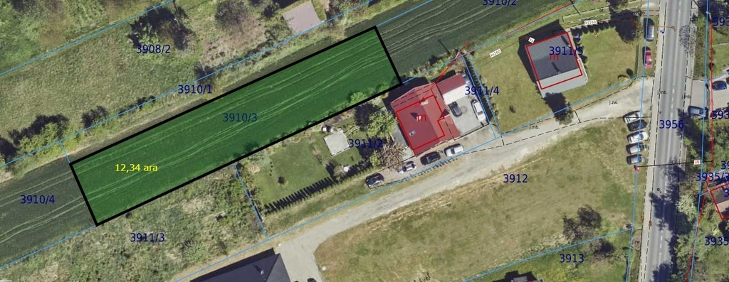 powierzchni 12,34 ar, położona przy ul. Strzeleckiej, w drugiej linii zabudowy.