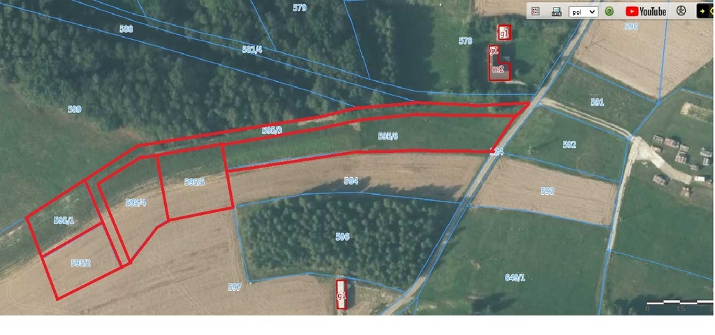 Na działce znajduje się prąd a na sąsiedniej działce : gaz. Dojazd drogą asfaltową . W cenie działki jest 1/5 udziału w drodze wewnętrznej, która przebiega wzdłuż dłuższego boku działki.