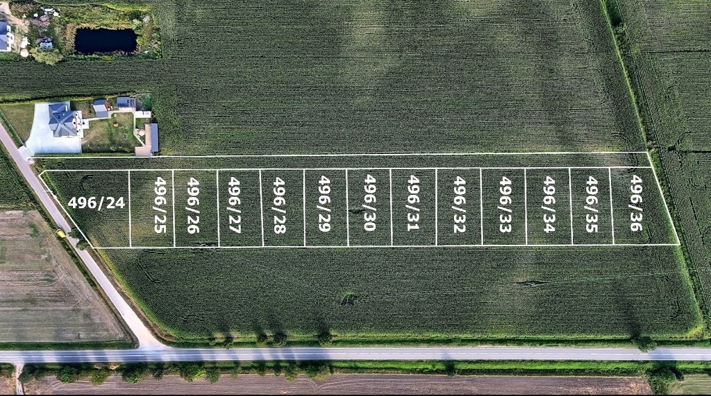 DOJAZD I INFRASTRUKTURA Dojazd do działek odbywa się drogą asfaltową, a następnie drogą wewnętrzną (działka 496/23). Media – prąd i woda – zostały doprowadzone do granicy działek.