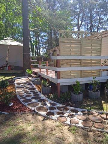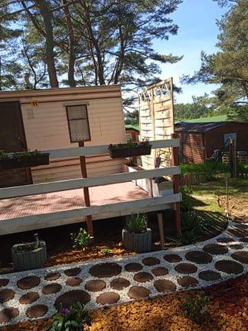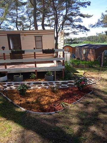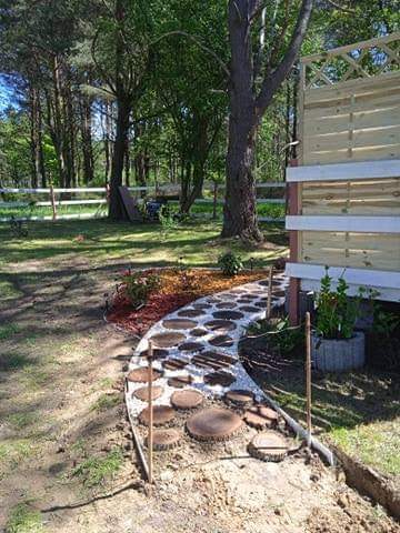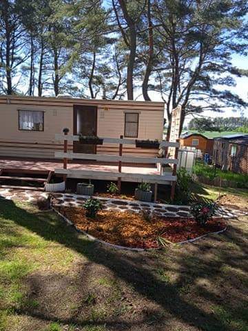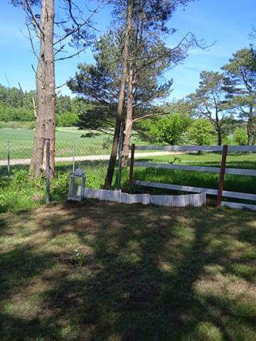 Na działce znajduje się domek holenderski z sypialnią, kuchnią, jadalnią i łazienką.