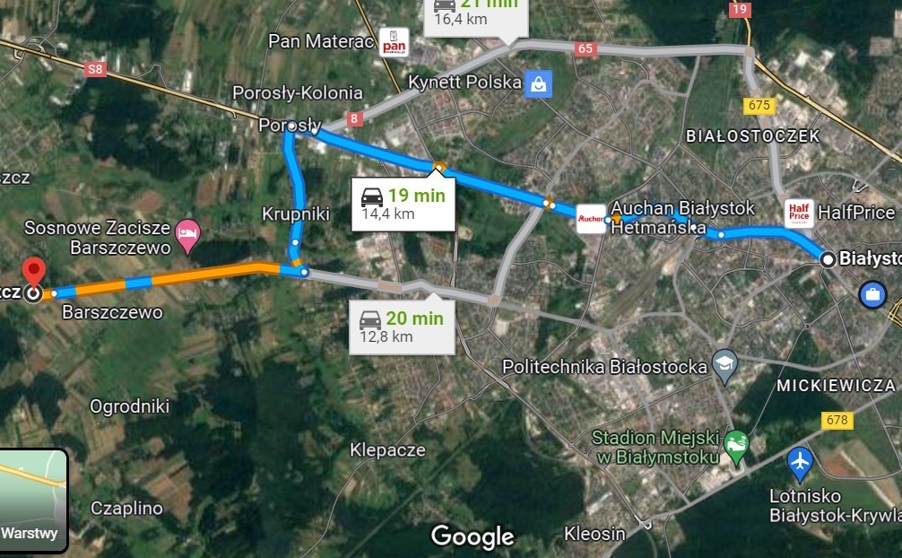 - 2,5 km od Choroszczy – również wygodną drogą asfaltową.