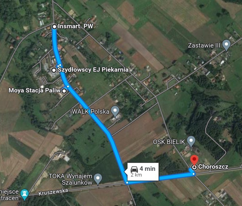 - sklep spożywczy, piekarnia, stacja benzynowa – ok. 3 min. jazdy