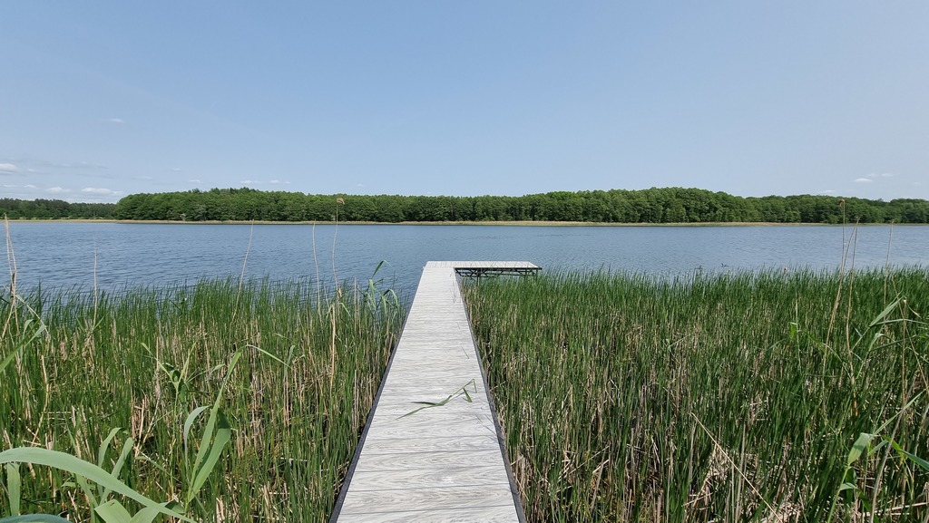 Oferta sprzedaży nieruchomości obejmuje również nowo wybudowany pomost rekreacyjny o łącznej długości 37m.