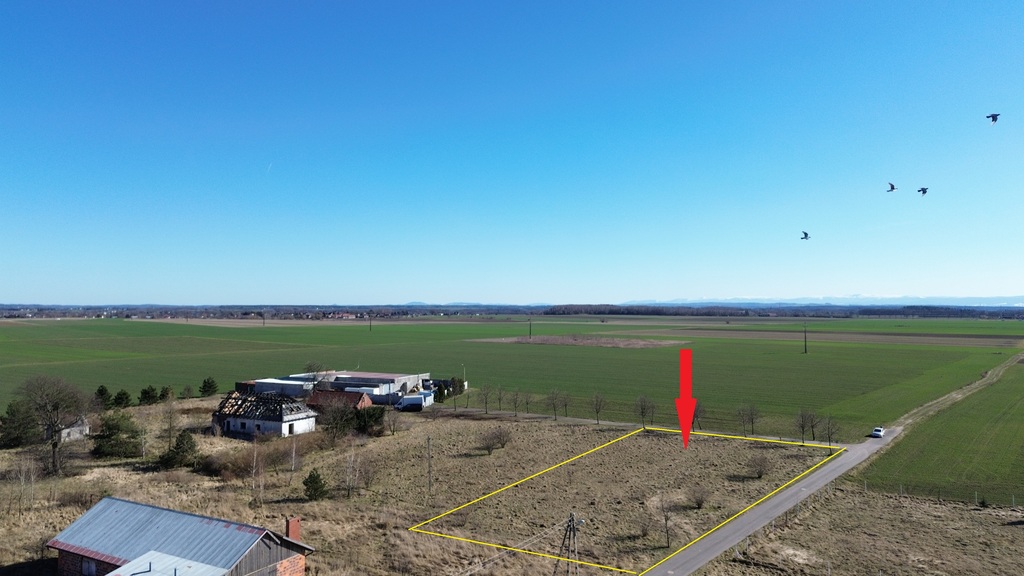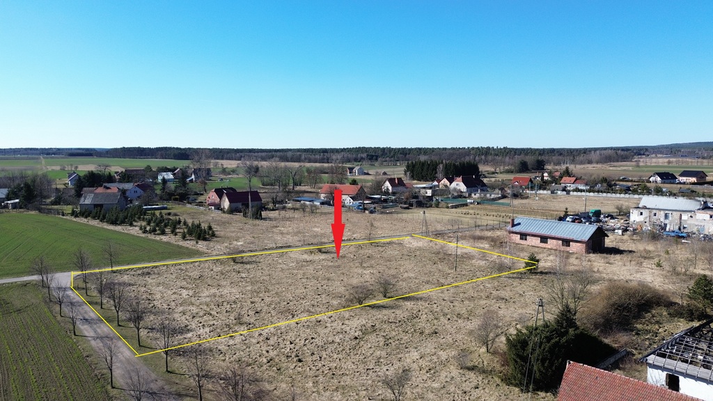 - Działka o kształcie prostokątnym, szerokość 38,8 m oraz długość 69 m położona na płaskim terenie w na skraju wsi