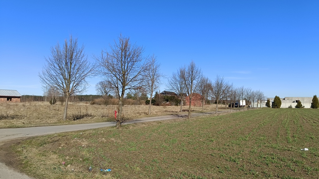 - W sąsiedztwie niska rozproszona zabudowa, dwie inne działki budowlane oraz łąki i pola uprawne