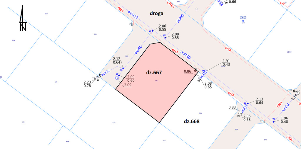- przyłącze energetyczne oraz wodociągowe w drodze przy granicy działki