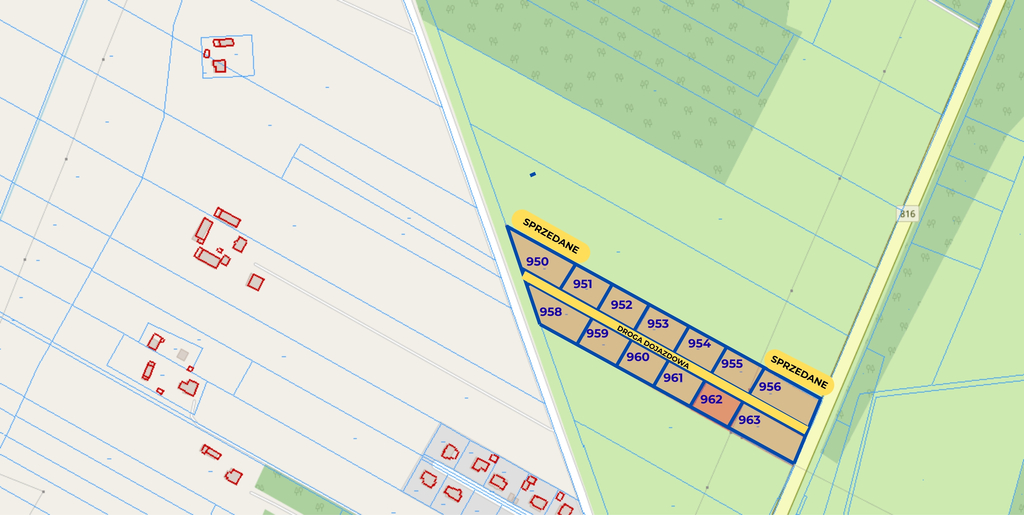 Działka nr 950 – 1650 m² – 94 000 zł - SPRZEDANA• Działka nr 951 – 1160 m² – 66 000 zł