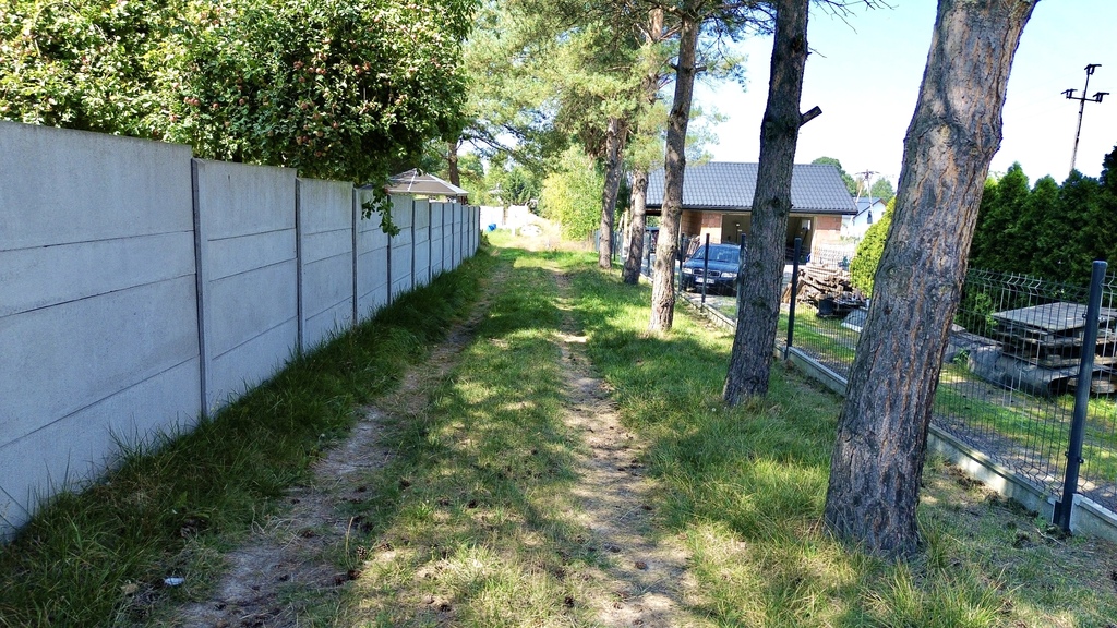 Granice: Działka graniczy z sąsiednią posesją, która korzysta z tej samej drogi prywatnej.