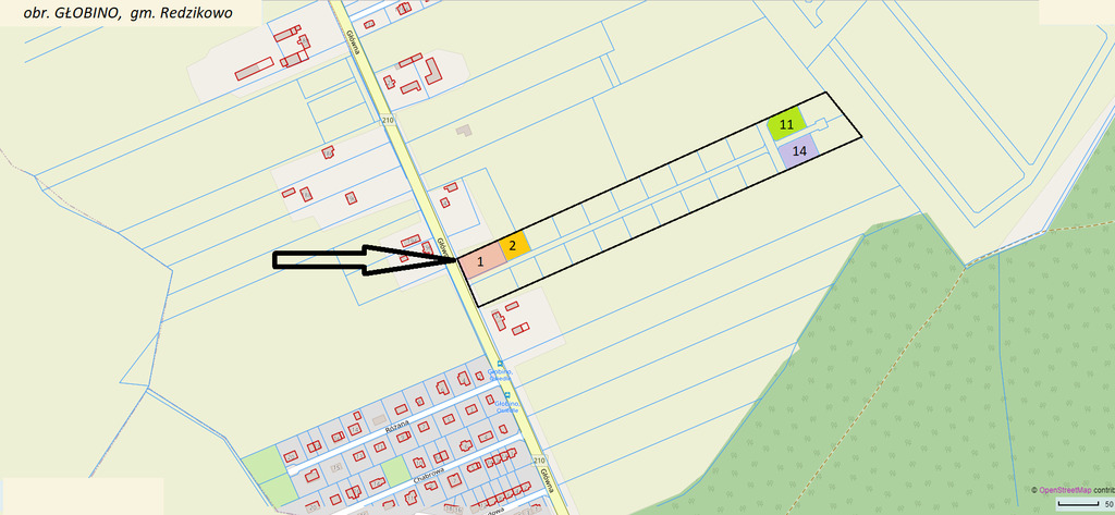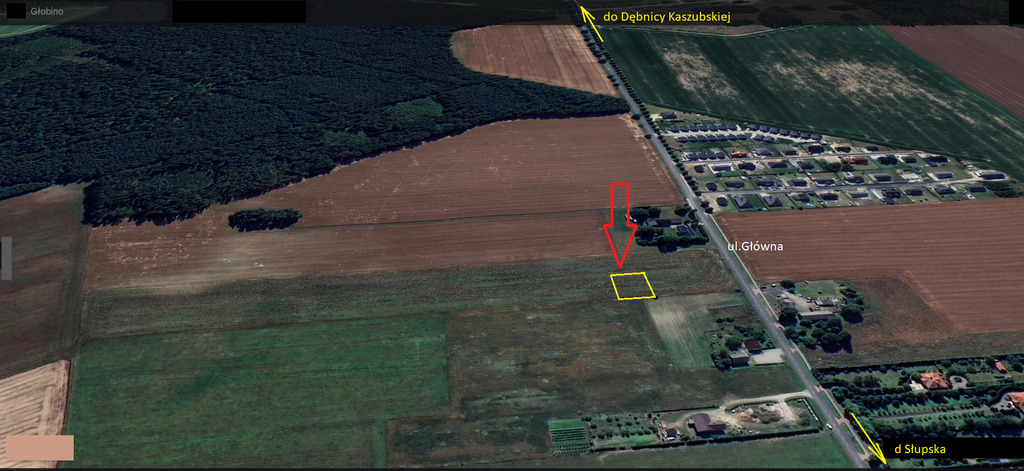 Głobino przy ulicy Głównej, zaledwie 4,5 km od miasta Słupska. Działka o powierzchni
