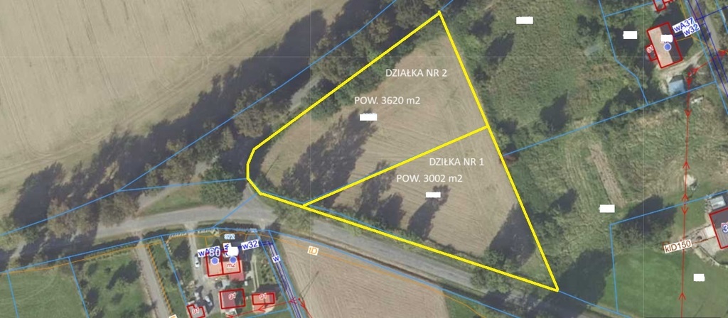 - Nieruchomość to dwie działki o powierzchniach 3002 m2 i 3620 m2 położone na skrzyżowaniu głównych dróg asfaltowych w pobliżu zamku Grodziec.