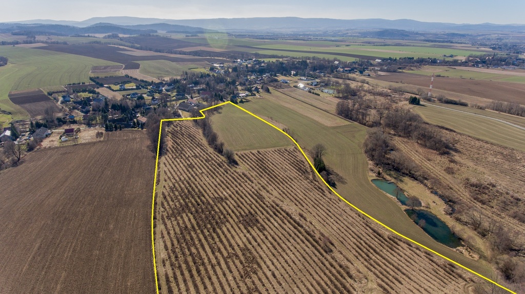 Nieruchomość znajduje się w otoczeniu pól i lasów, w wyjątkowo spokojnej i widokowej okolicy. Z działek rozciąga się panorama na okoliczne wzgórza i górskie krajobrazy, które zachwycają o każdej porze roku. To idealna propozycja dla osób ceniących kontakt z naturą, przestrzeń i prywatność, a także dla inwestorów poszukujących gruntów o dużym potencjale.