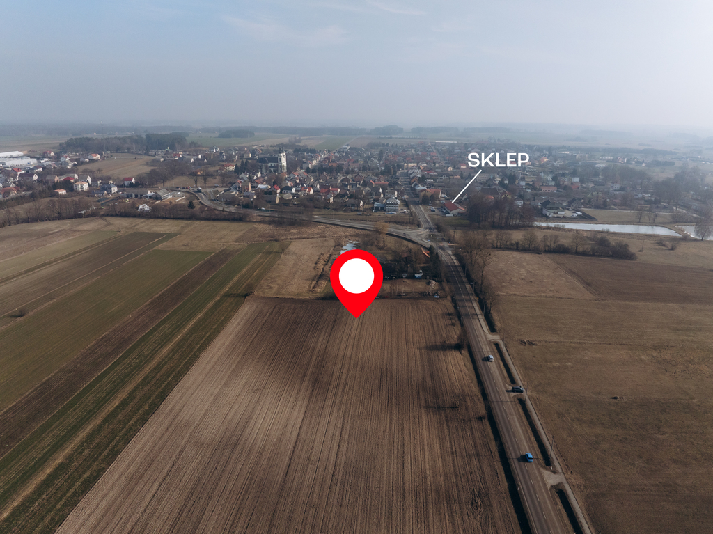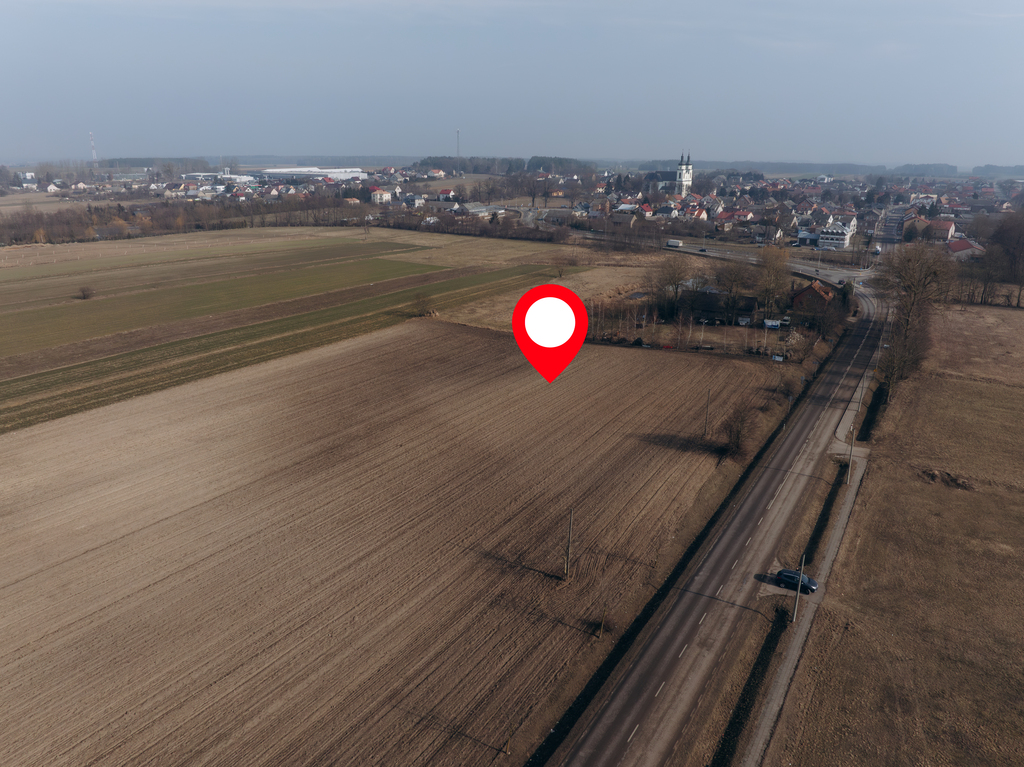 łatwy dojazd i świetną widoczność – kluczowe atuty dla potencjalnej działalności gospodarczej. Jednocześnie okolica zachowuje swój spokojny charakter, co sprawia, że teren świetnie nadaje się także pod budownictwo jednorodzinne.