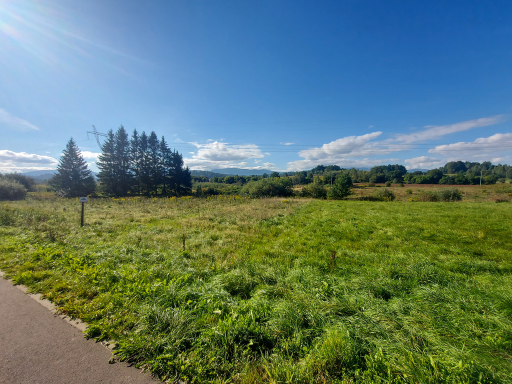 Działki są płaskie w pełni nasłonecznione w otoczeniu zieleni i drzew z widokiem na szczyty Karkonoszy.