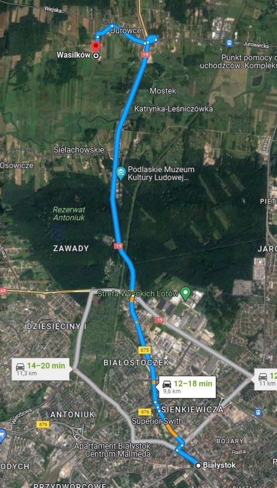 4,5 km od granic Białegostoku, szybki dojazd drogą nr 19. Do Wasilkowa również 4,5 km wygodnym dojazdem.