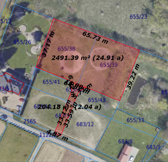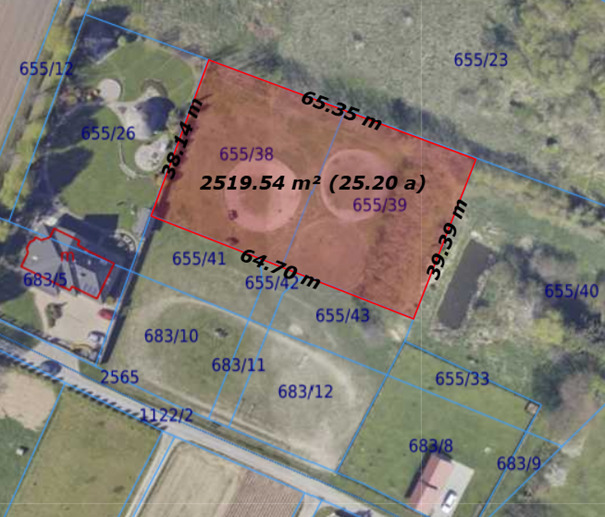Wymiary: 39,2 m x 65,7 m – regularny, prostokątny kształt ułatwia zagospodarowanie terenu.