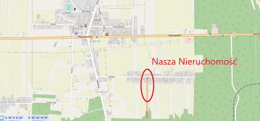 Powierzchnia: 1200m2 - działka w drugiej linii zabudowy z udziałem w drodze dojazdowej