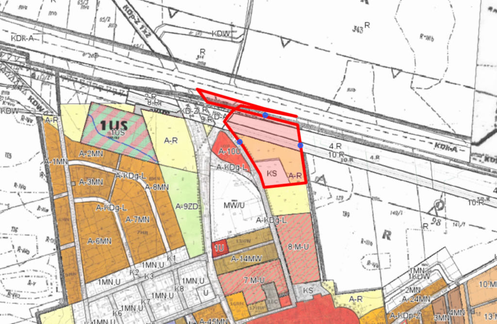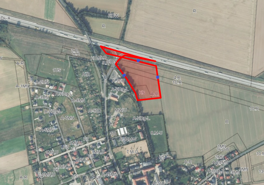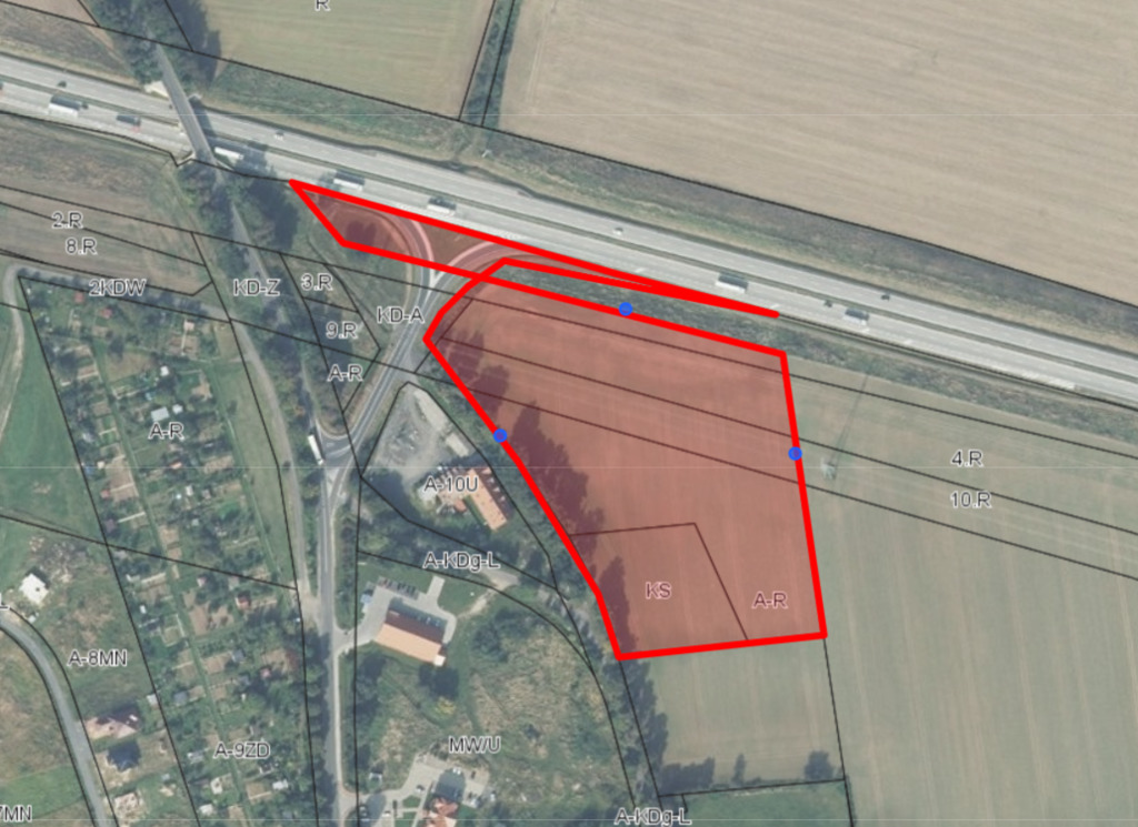 - W miejscowym planie zagospodarowania przestrzennego działka posiada symbol terenu KS i A-R grunty rolne i może być przeznaczona np. pod budowę stacji paliw.