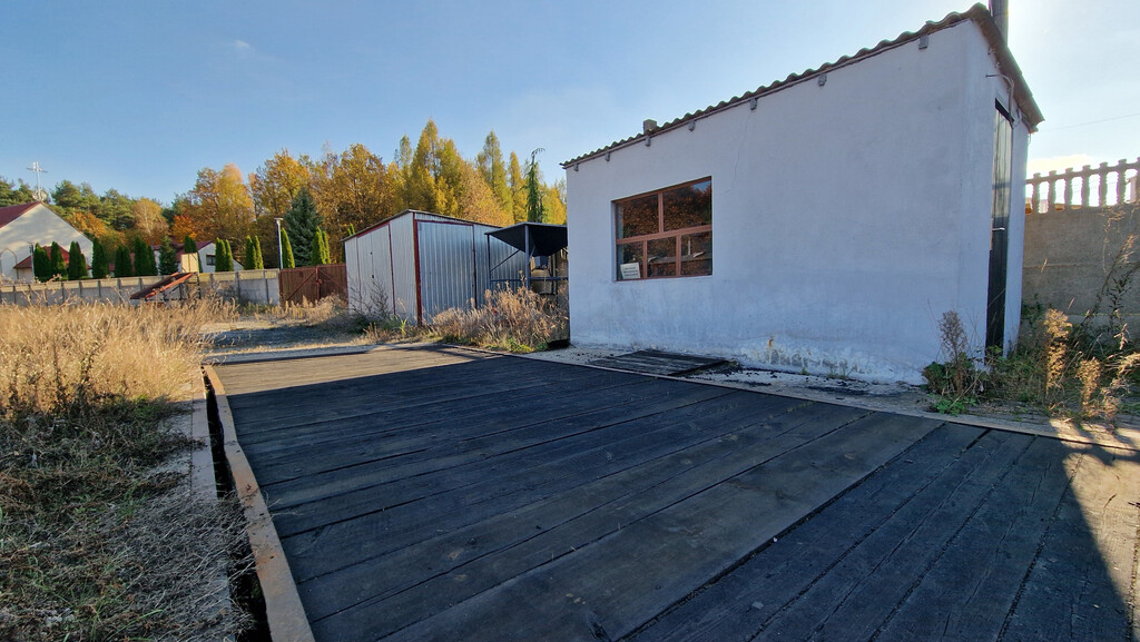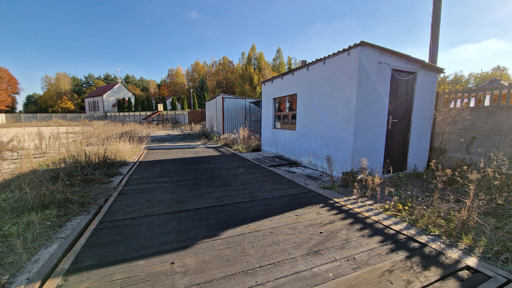 Na działce znajduje się waga o niosłości 20ton wraz z pomieszczeniem wagowym oraz dwie wiaty blaszane po 18m² powierzchni.