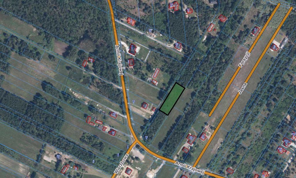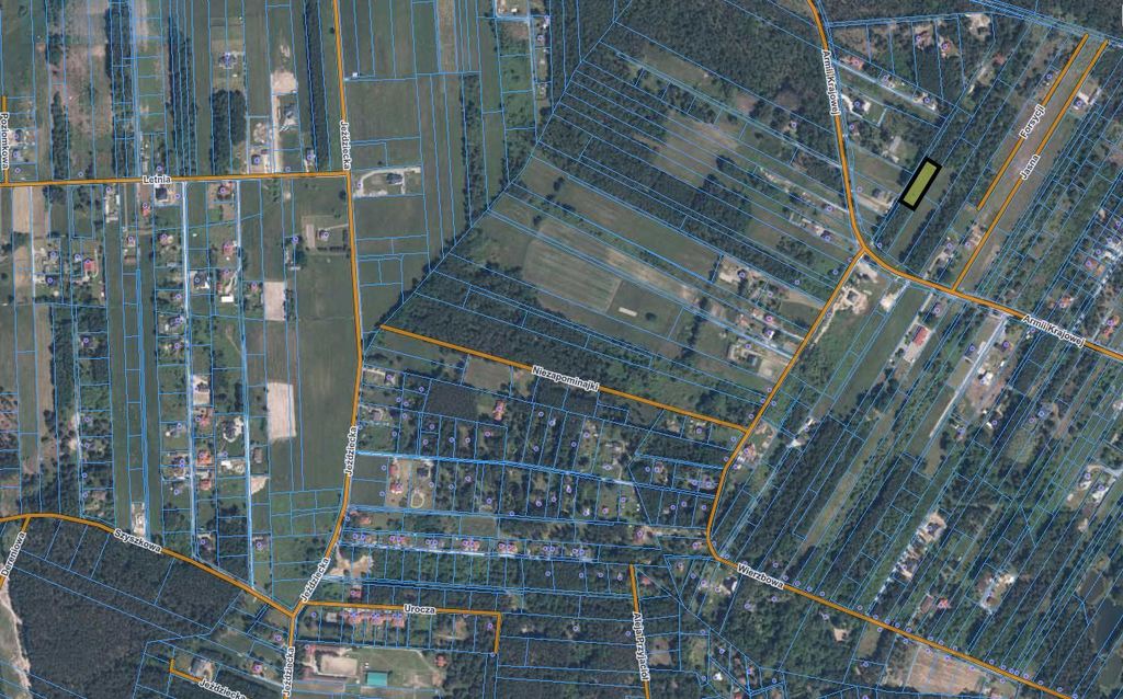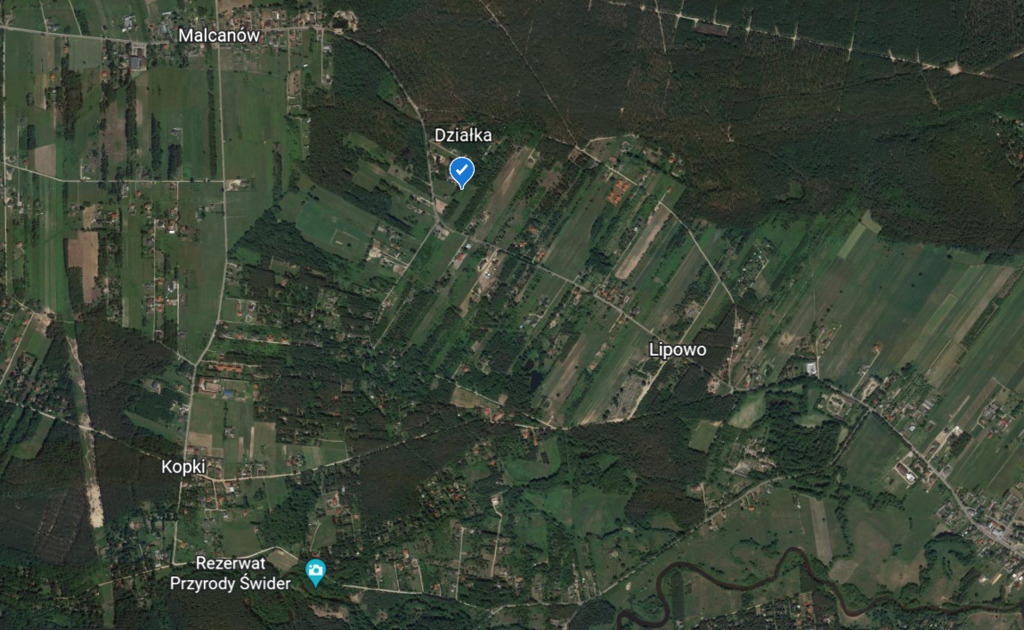 Działka o powierzchni 2000 m2 w kształcie prostokąta (25,80 m x 78,62 m), położona w Lipowie w gminie Wiązowna, powiat otwocki .