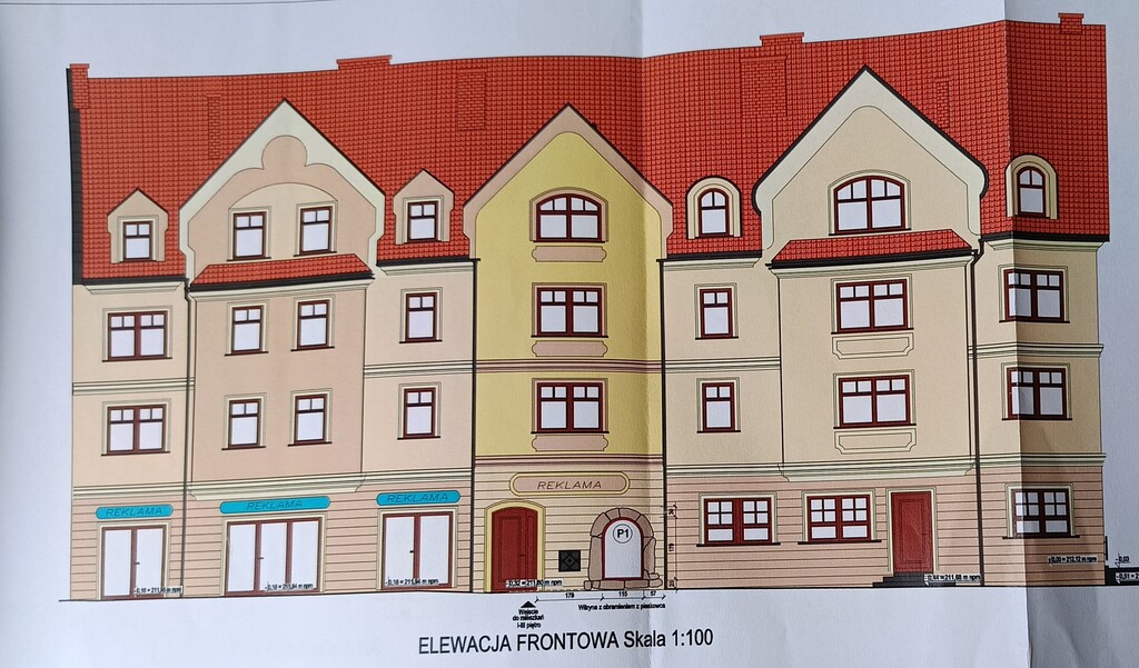 Projekt zakłada budowę kręgielni i komórek lokatorskich w piwnicy. Na parterze trzy lokale usługowo-handlowe i restaurację. Natomiast na pozostałych kondygnacjach od pierwszego do trzeciego pietra dziesięć lokali mieszkalnych w tym pięć dwupoziomowych. Można zmienić projekt i stworzyć piętnaście mieszkań jednopoziomowych.