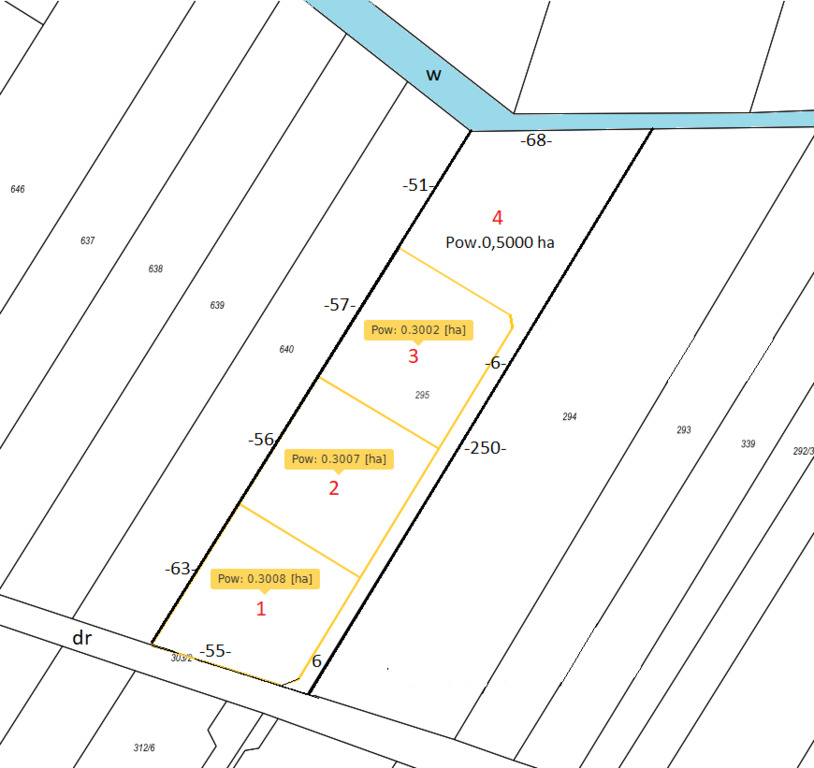 Najważniejsze informacje:- kształt prostokąta o wymiarach ok,55m x 63m
