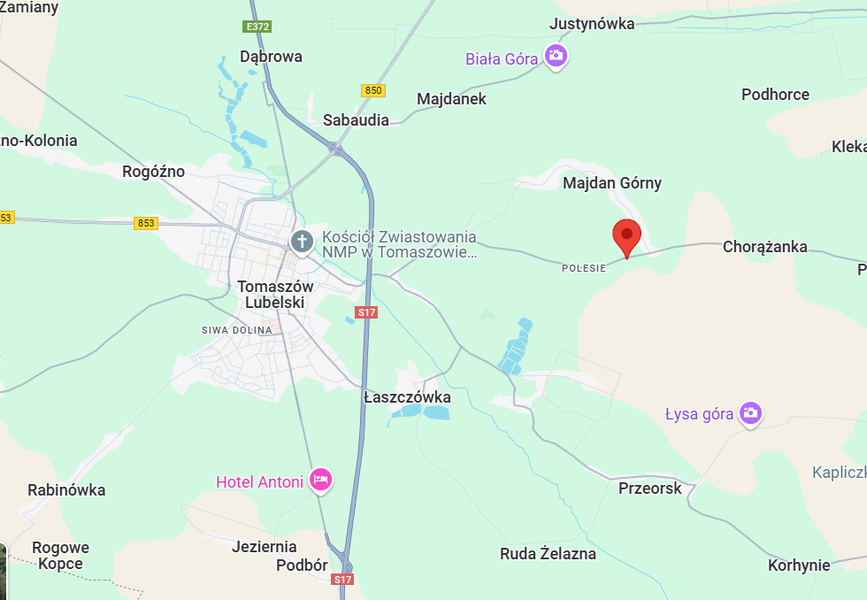 Majdanie Górnym koło Tomaszowa Lubelskiego w województwie lubelskim.