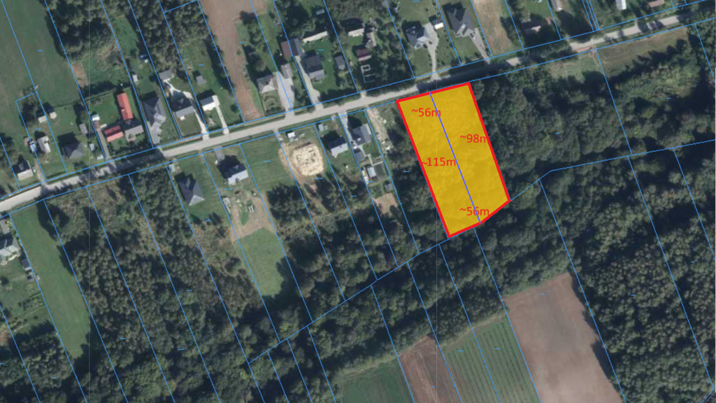 Działki o powierzchni 3022m2 i 3024m2, o kształcie prostokątów, bezpośrednio przy głównej ulicy.