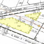 OPIS GRUNTU: Powierzchnia działki wynosi 2409 mkw. i jest w kształcie zbliżonym do trójkąta o wymiarach: 9,82 m x 88,5 m x 60 m x 67,8 m. Nieruchomość zadbana regularnie koszona i bez nasadzeń. Teren płaski i suchy. Dojazd do nieruchomości odbywa się drogą publiczną utwardzoną o szerokości 10 m. Przez działkę przechodzi napowietrzna linia elektroenergetyczna średniego napięcia SN 15 kV.