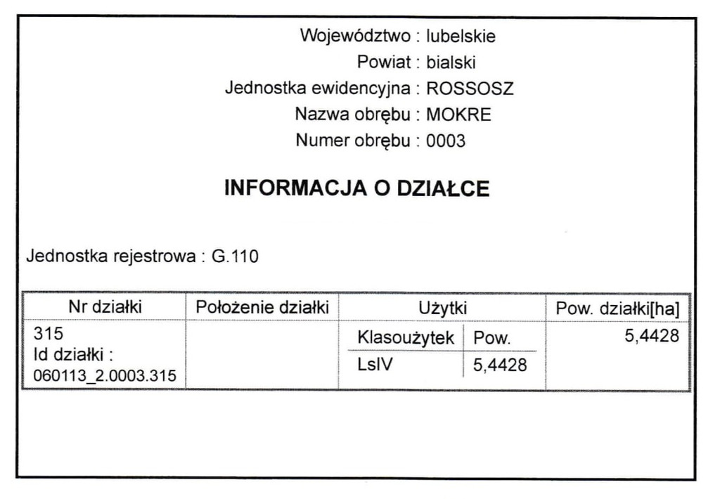 Powierzchnia działki - 5,4428 haNumer działki - 315