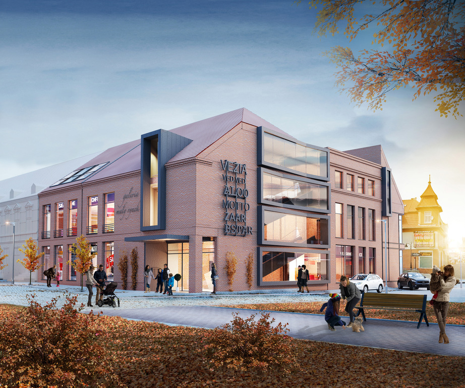 Nieruchomość gruntowa o powierzchni 795 m2 z obowiązującym planem zagospodarowania przestrzennego, pozwoleniem na budowę oraz projektem budynku, który może pełnić funkcję małej galerii handlowej.