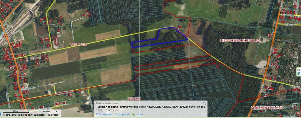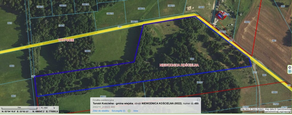 Niewodnicy Kościelnej przy drodze do miejscowości Trypucie w gm. Turośń Kościelna.