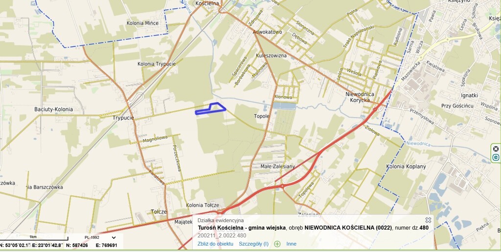 działka przy drodze gminnej nieutwardzonej, w bezpośrednim sąsiedztwie tylko dwa siedliska, dużo terenów zielonych, z dala od zgiełku miejskiego i gminnego.