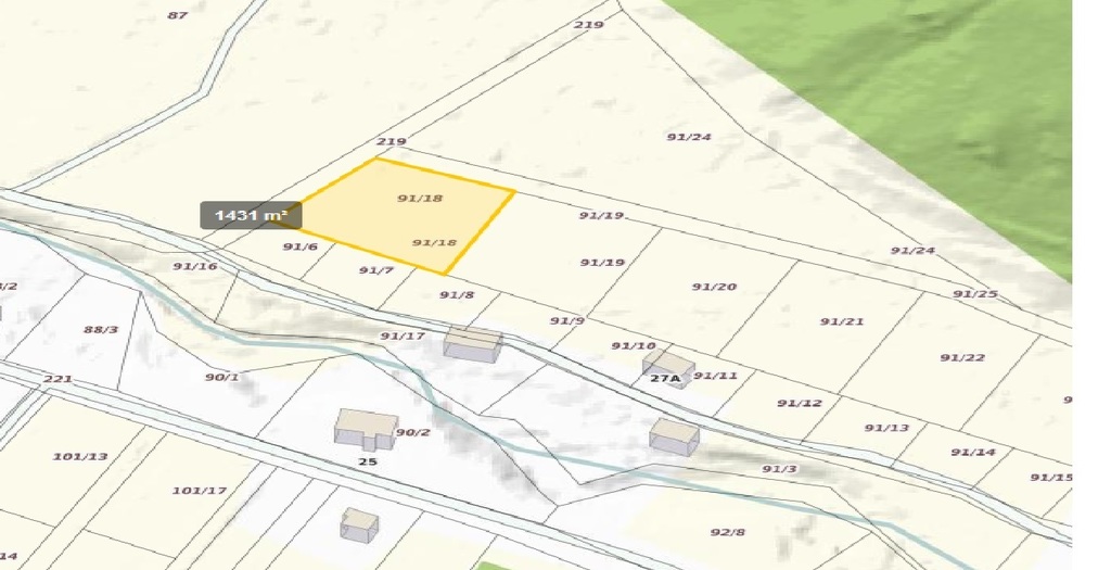 Nieruchomość stanowiąca działkę nr 91/18 o powierzchni 1431m2 położona jest w zurbanizowanej części wsi. Kształt regularny. Dojazd do nieruchomości  drogą gruntową. Teren w większości płaski.