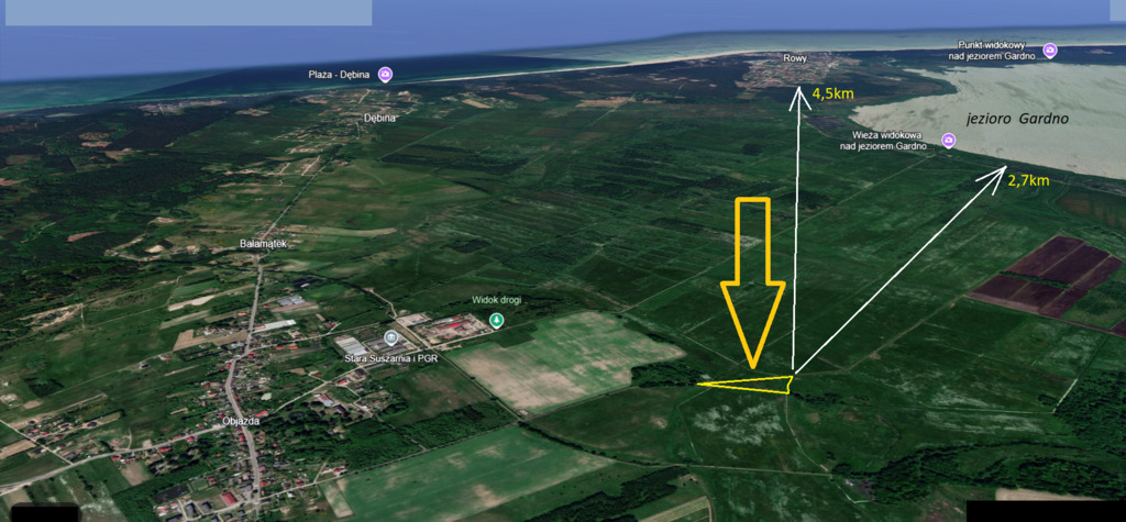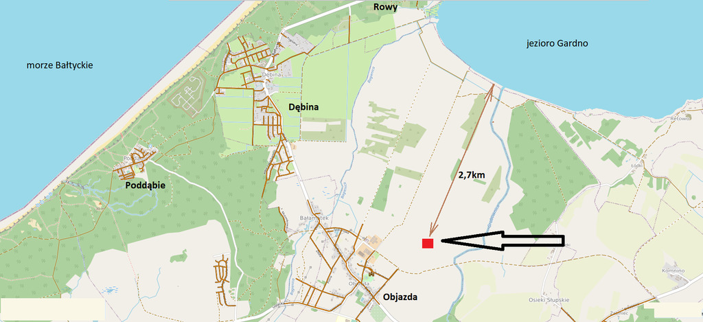 Na sprzedaż działka rekreacyjna w otoczeniu pól, lasu, blisko jeziora Gardno w miejscowości Objazda. Działka położona przy drodze gminnej, zaledwie 2,7 km od jeziora Gardno oraz około 5 km od morza Bałtyckiego i miejscowości Rowy.  Powierzchnia działki to 0,5100 ha, teren płaski niezalesiony z wjazdem z ulicy Parkowej, nieuzbrojona w media. Na danym terenie obowiązuje studium uwarunkowań i kierunki zagospodarowania przestrzennego Gminy Ustka - działka na  terenie obszaru łąk Objejskich oraz w otulinie słowińskiego Parku Narodowego w granicach Gminy Ustka. Miejsce idealne dla osób szukających ciszy i spokoju oraz kontaktu z naturą.