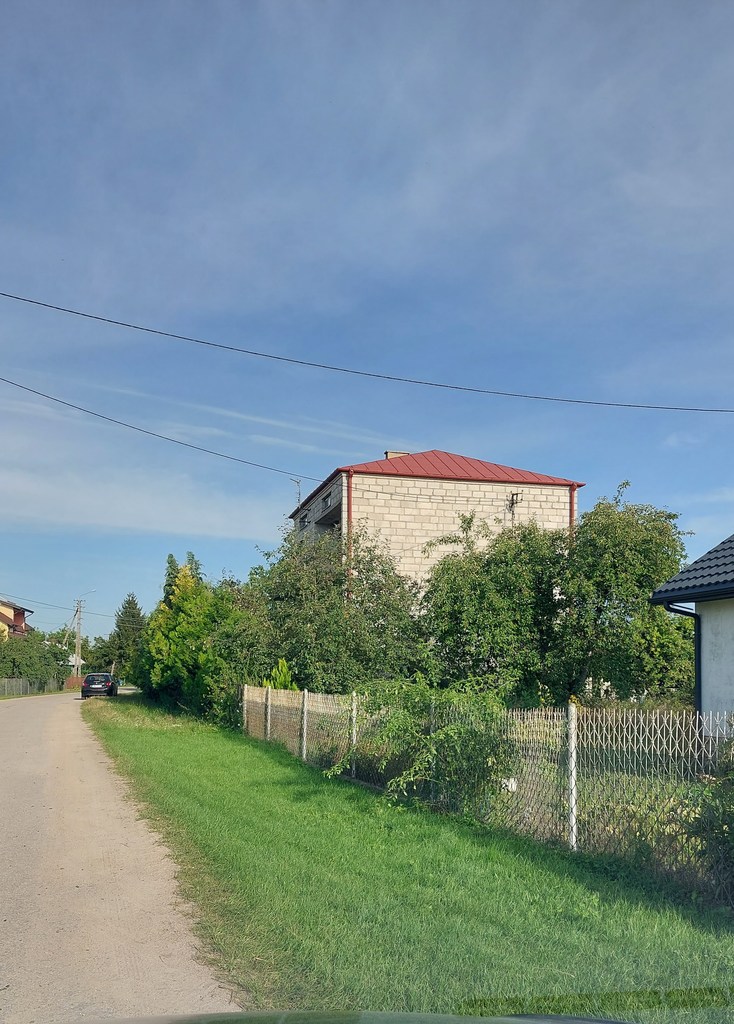 Dom mieszkalny jest kryty blachą, podłączony do wodociągu i energii elektrycznej