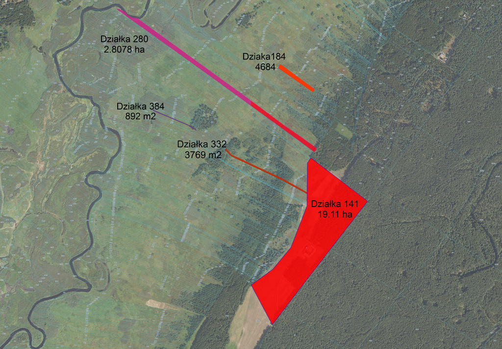 Nieruchomość składa się z następujących działek: Działka 141, obręb 311 Olszowa Droga za Twierdzą: 19,11 ha