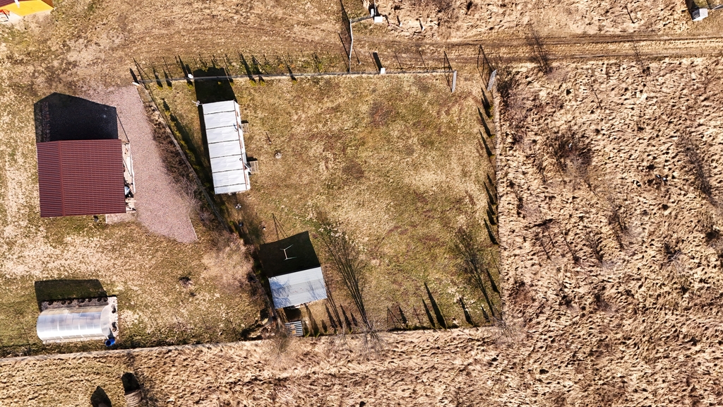 Działka w pełni ogrodzona, z nasadzeniami wzdłuż ogrodzenia i monitorowana.