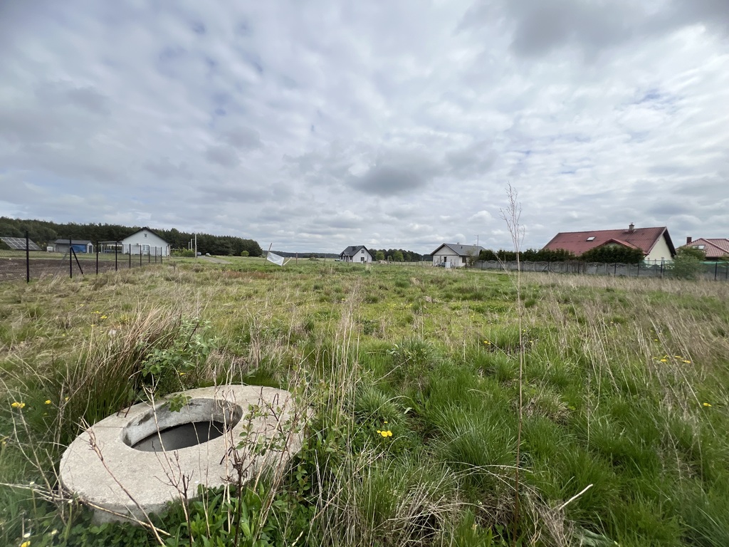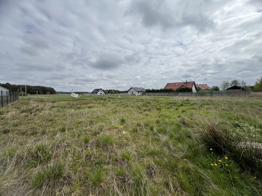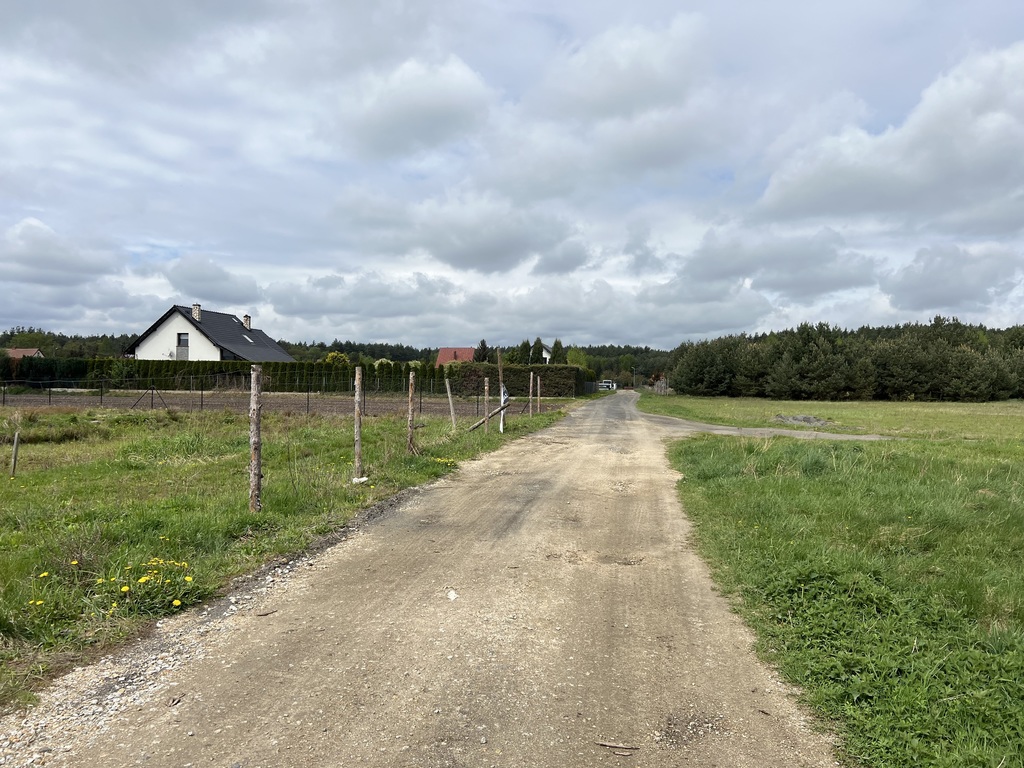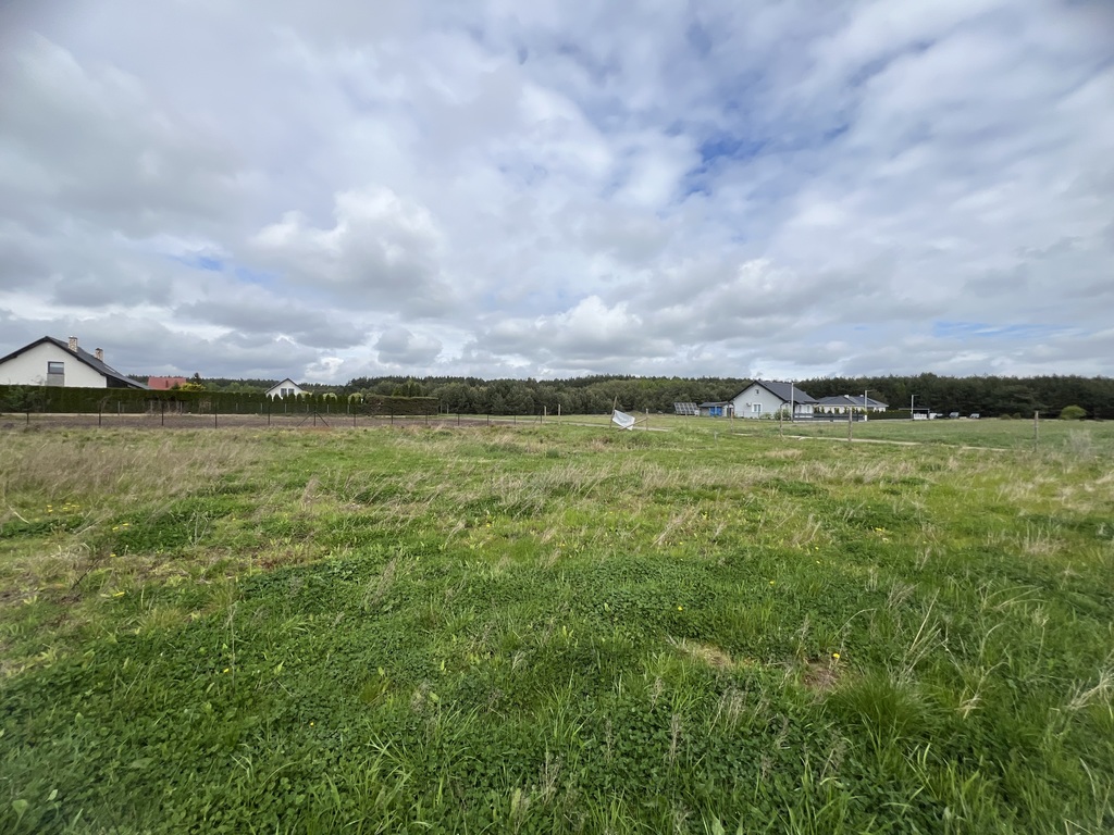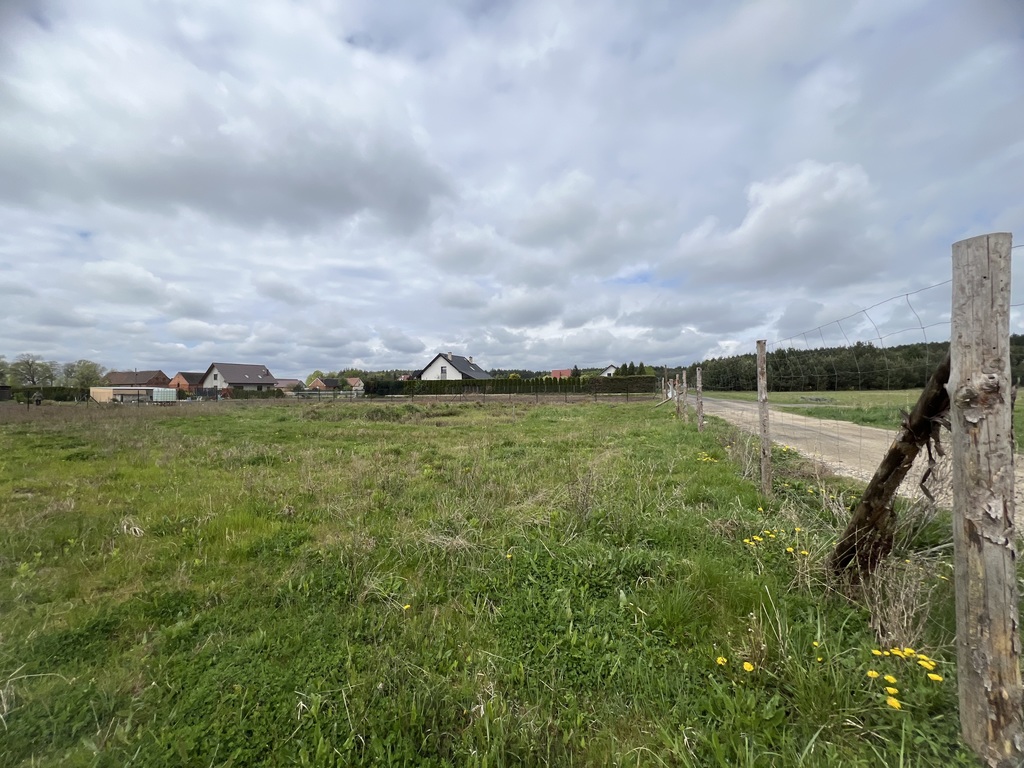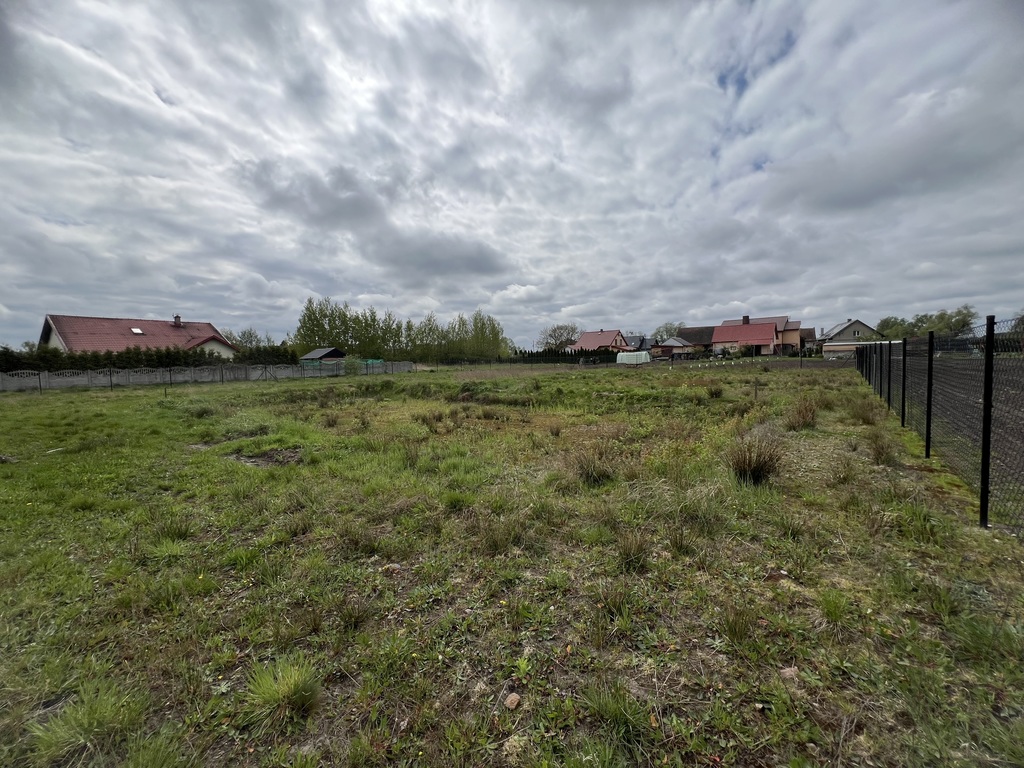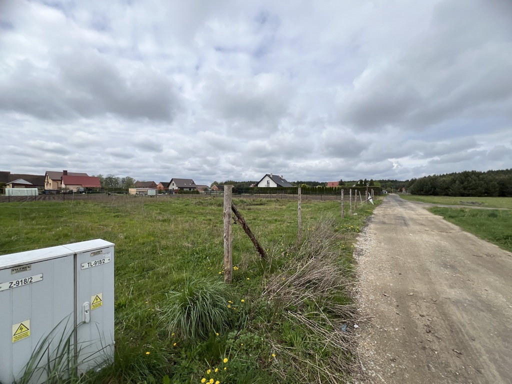 Cena działki to 129 900 zł, wymiary 37/38 m, ogrodzona z trzech stron siatką, teren płaski, droga utwardzona, w sąsiedztwie nowych i starych zabudowań.