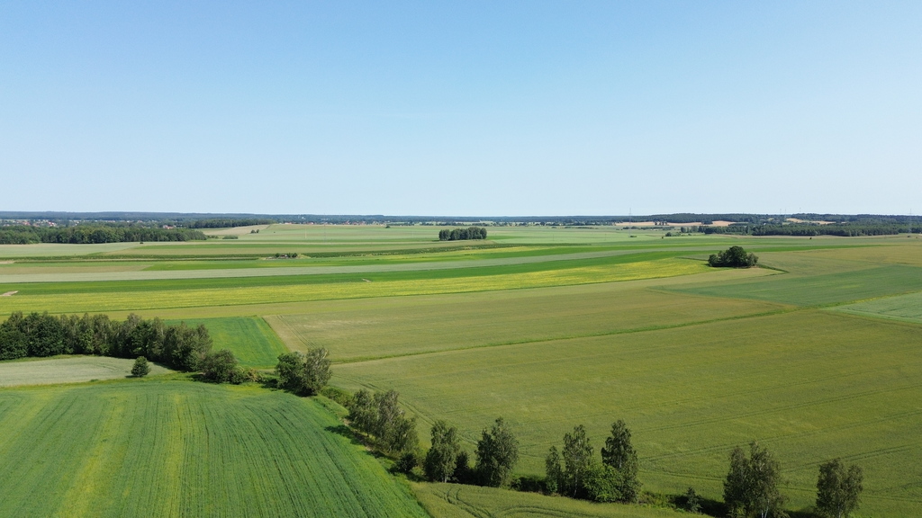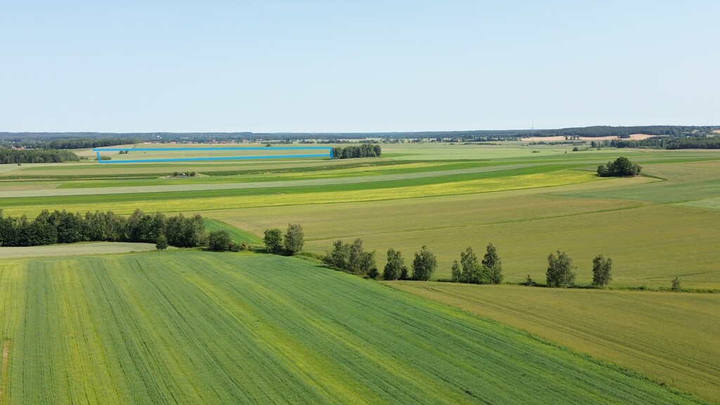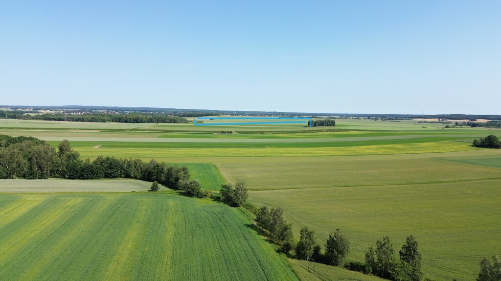 - Kształt prostokąta, płaska z dojazdem drogą polną